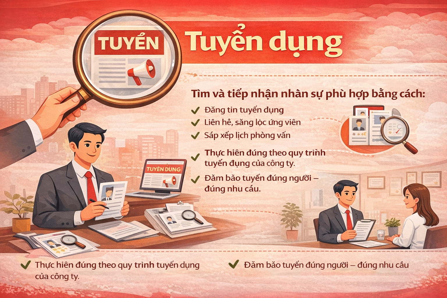 - Tuyển dụng: Tuyển dụng nhân sự còn thiếu dựa trên nhu cầu của các phòng ban