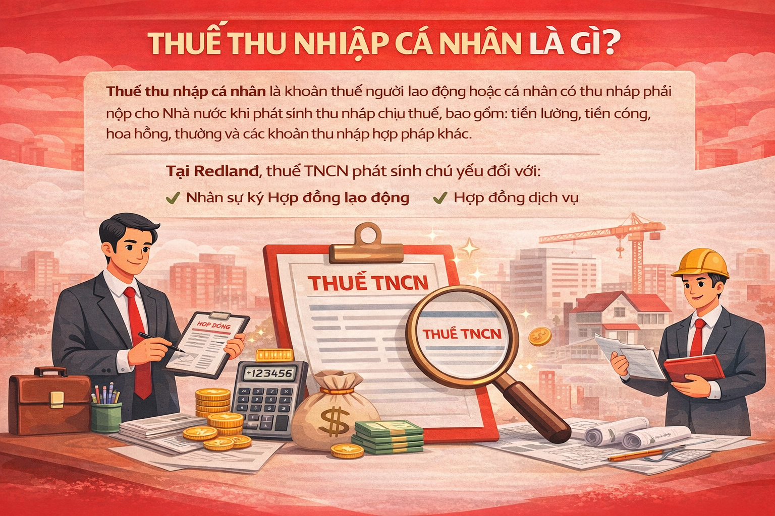 Bài viết này cung cấp cái nhìn tổng quan về Thuế thu nhập cá nhân (TNCN) tại Redland, giúp nhân sự hiểu đúng bản chất thuế, các hình thức khấu trừ và nghĩa vụ quyết toán thuế trong quá trình làm việc và hợp tác với công ty.